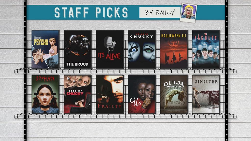 Parental guidance is strongly advised for my Halloween night selects, which are the cinematic equivalent of a worm in your candy apple! These freaky flicks feature parents and/or children fighting for their lives against bad seeds (Orphan, It’s Alive), sinister strangers (Us, Halloween III: Season of the Witch), generational trauma (Psycho, Frailty, The Brood) or, you know, evil forces outside of their control (Seed of Chucky, Ouija: Origin of Evil, Sinister, The Faculty). The movies get darker as the night goes on, so tune if you dare!
